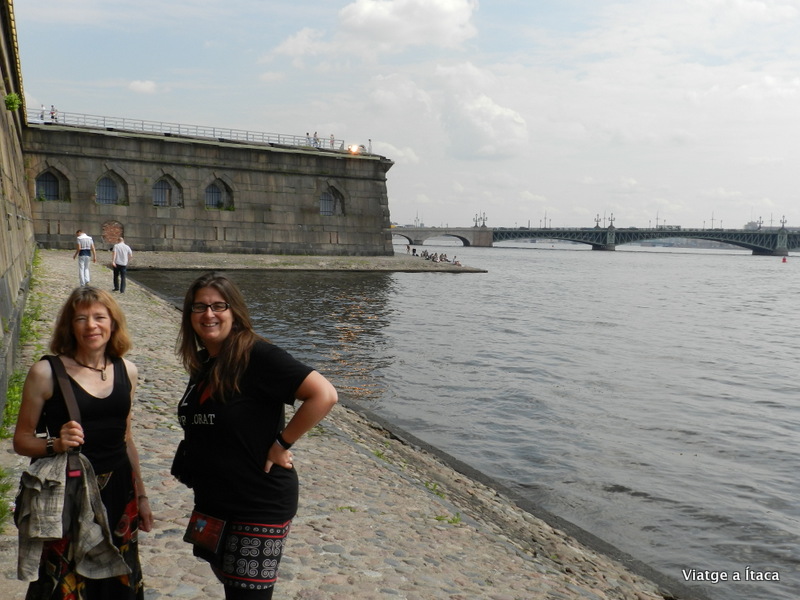 La Tatiana és una dona esportista a la que li encanta la bicicleta, ens explica moltíssimes coses de la història de la ciutat i de la cultura del poble. Com no havia de ser d’una altre manera, passejant, ens porta cap a la Fortalesa de Sant Pere i Sant Pau, construïda a principis de 1700 per ordre de Pere el Gran. Es troba en una illa natural al riu Neva i després de creuar un pont entrem al recinte on podem veure el conjunt d’edificis. A la església podem trobar les tombes de tots els zars russos, i de les seves famílies.