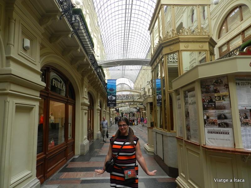 Hem arribat per l’estació Teatral’Naya que està al costat del Teatre Bolshói, i hem anat a parar als magatzems GUM, que realment són una passada, i a on, de pas que hi érem, hem aprofitat per menjar alguna cosa en condicions i asseguts en una taula.