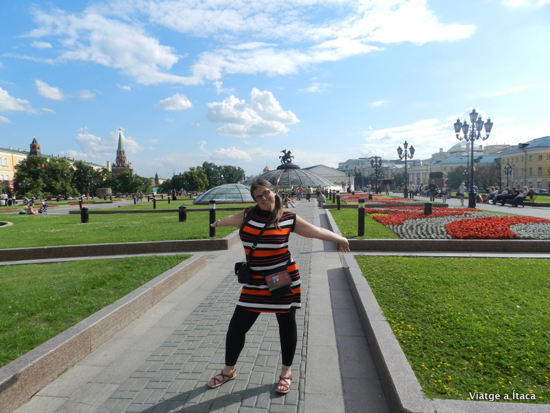 Al sortir de l’església hem anat al altre banda de la plaça on hi ha la catedral de Kazan i hem anat a parar a la plaça Manézhnaya on hi algunes fonts i hem parat a descansar.