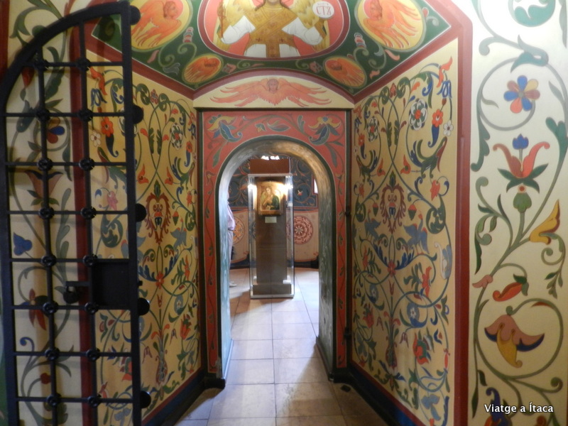 Ens hi hem apropat per fer-hi més fotos i donar-li la volta i al final hem decidit entrar, pagant l’entrada d’estudiant a 100 rubles cada un. L’interior està bé, però… l’exterior és molt millor!!! A dins hi havien tot d’exposicions de coses trobades a l’església i tot està decorat amb pintures molt maques.
