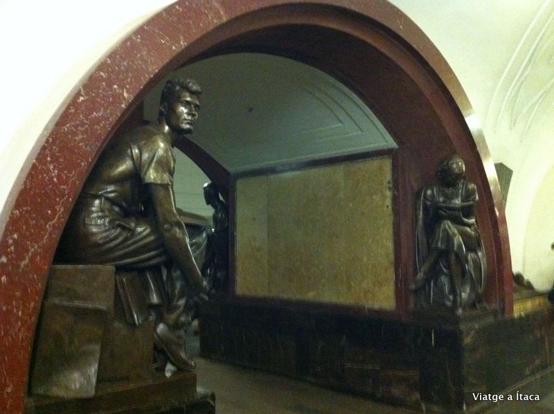 Durant l’excursió de tornada, ens hem estat fixant en les estacions de metro per les que hem passat i la veritat és que la parada on estàvem era molt maca ja que estava dedicada als Partisans que van combatre a la guerra contra els alemanys. Per una altra banda a la que hem parat per fer el transbord hi havia tot d’estàtues dedicades al poble, suposo que Ploschad Revolutsii vol dir revolució del poble o alguna cosa semblant. Em sembla que demà o demà passat seguirem investigant sobre les estacions del metro de Moscou.