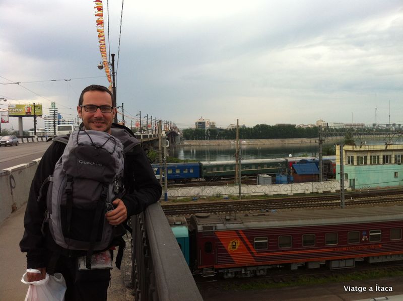 Són les 7:30 del matí i decidim que ja toca aixecar-se de les cadires, que ja no sé si son amb forma de cul o els culs amb forma de cadira. Sortim de l’estació, amb les motxilles, que notem molt pesades, a l’esquena, i anem a creuar el riu Angarà, que separa la ciutat en les seves dues vores per uns 580 metres.