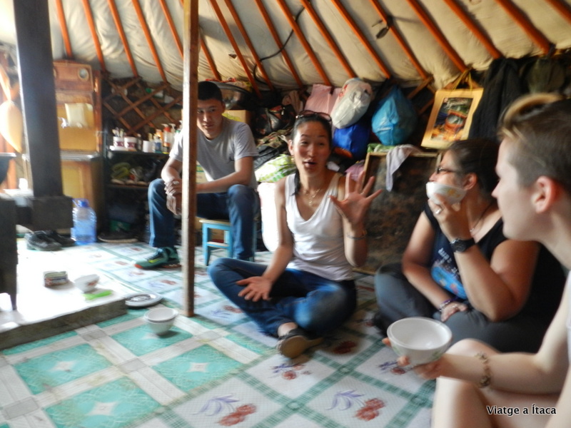 Hem sopat arròs amb patata i carn seca que estava molt bo, i a més hem pogut provar una sopa típica mongol feta també amb carn seca i ens ha explicat que clar, maten el bestiar al novembre i durant l’hivern amb el fred que fa tenen un refrigerador natural, però per poder tenir carn al estiu el que fan es assecar-la posant tires a sobre el ger, i amb el vent en cinc mesos la tenen seca i així en poden menjar quan puja la temperatura.
