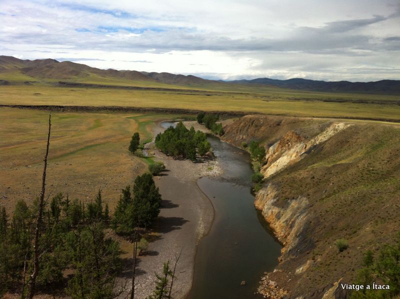Després de un parell d’horetes ben bones per una pista plena de forats, arribem al parc nacional on trobarem la caiguda d’aigua i farem nit. La pluja ens segueix acompanyant, però fem parada a un mirador, on la història explica que hi van morir molts mongols durant una nit de fa molt temps, emportats pel riu en la seva crescuda, mentre descansaven per la batalla de l’endemà.