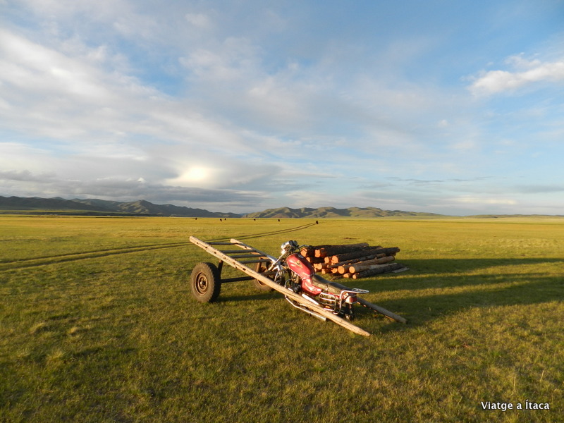 Fan un descans, i fem dinar tradicional en un ger, on mengem unes empanadilles fregides plenes de carn, amb tots els mongols que hi caben a dins i ens saluden.