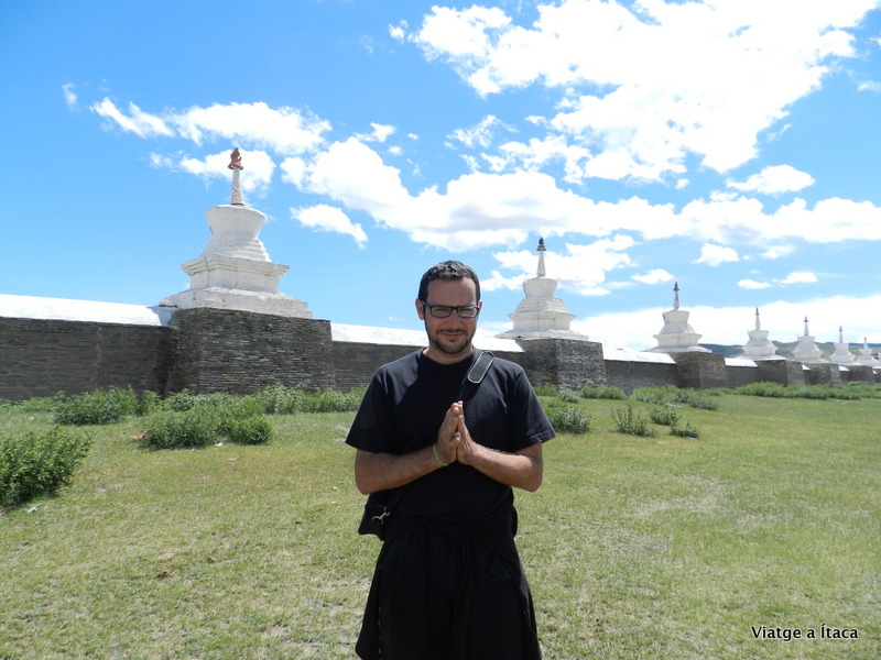 Del museu, hem anat al temple Erdene Zu Khiid, un dels pocs que es conserva sencer, i que els russos no van destruir, tot i que sembla que dins hi havia molts temples i avui en dia només en queden 3, ja que els monjos van enganyar als russos, tot posant al passadís abans d’entrar peix cru i restes de menjar, amb el que feia tanta pudor que els russos es van creure que allà no hi havia res de res.