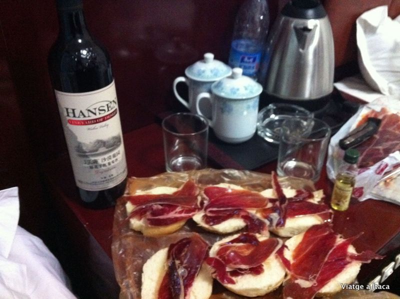 Al acabar els hi hem demanat si ens podien demanar un taxi per tornar a Wuhai i també ens ho han fet! I nosaltres mentre esperàvem que hem fet? Doncs comprar una ampolla de vinet per la nit 😉
