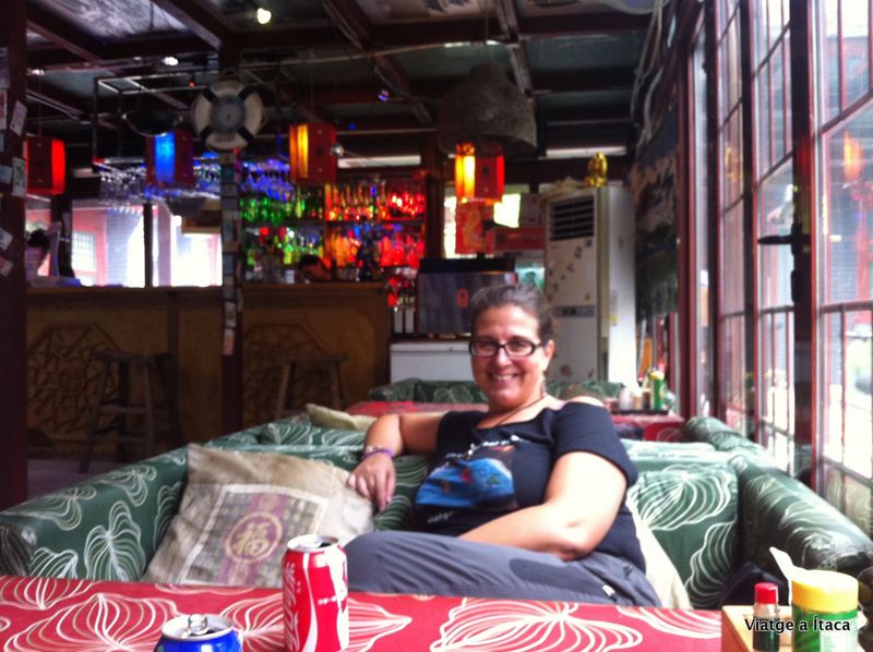 Tot i que ja pensàvem que seria més car que el que podíem trobar a fora, tornem al bar del hostel, on fem un parell de plats i unes begudes que ens senten de meravella. Un descans a l’habitació de l’hotel mentre comprovem que el Wifi va de conya, però hi ha pàgines on no hi podrem entrar pel veto xinès, com per exemple el Bloc.