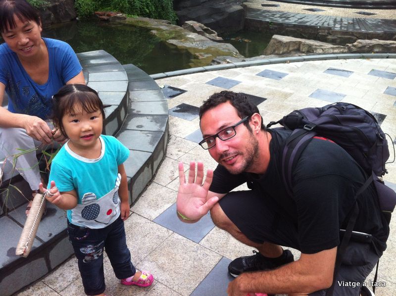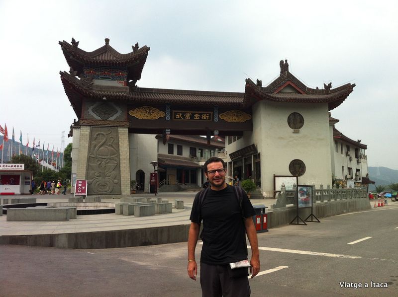 Després, evidentment volíem anar cap a la zona dels temples de Wudangshan, però com no sabíem on ens havien deixat ahir, evidentment tampoc sabíem si estàvem lluny o aprop de l’entrada al recinte. Així que volíem trobar un taxi o van que ens hi portés, però sembla ser que a l’hora que nosaltres hem decidit sortir cap pujava, o no els sabíem parar? Que no semblem prou guiris? Que no es nota a on volem anar? Finalment abans d’arribar a la desesperació, ens ha parat una van que ens ha preguntat a on anàvem i ens ha dit que ens cobrava 10 yuans per persona, així que sense pensar-ho hem dit que si. I que ha resultat… Doncs que estàvem molt aprop del destí, home potser en van seria molt aprop i a peu no tant però si, al costat. Nosaltres hem fet nit al centre del poble, i a la muntanya s’hi arriba des de la sortida del poble.