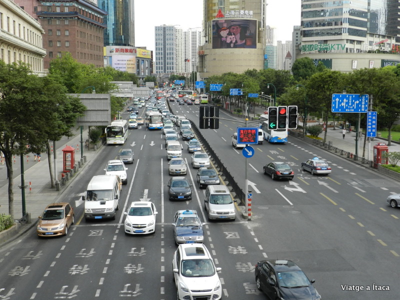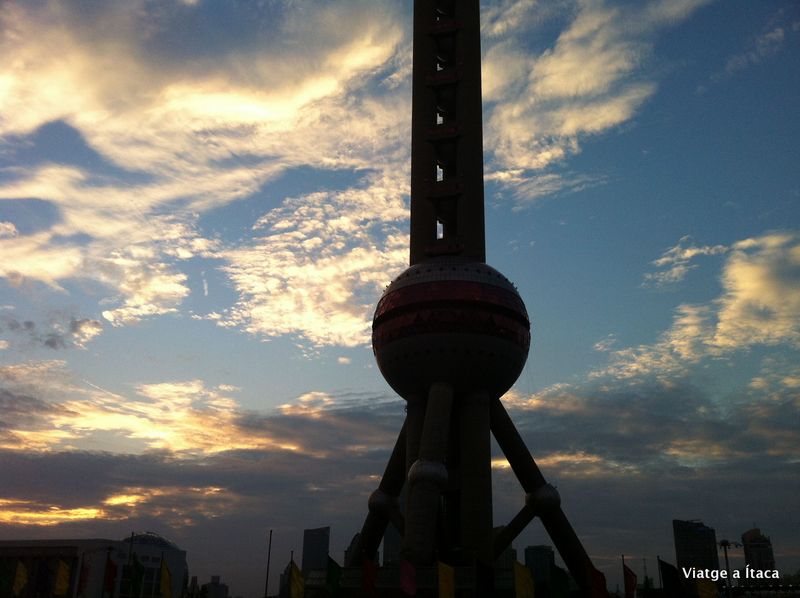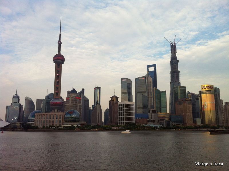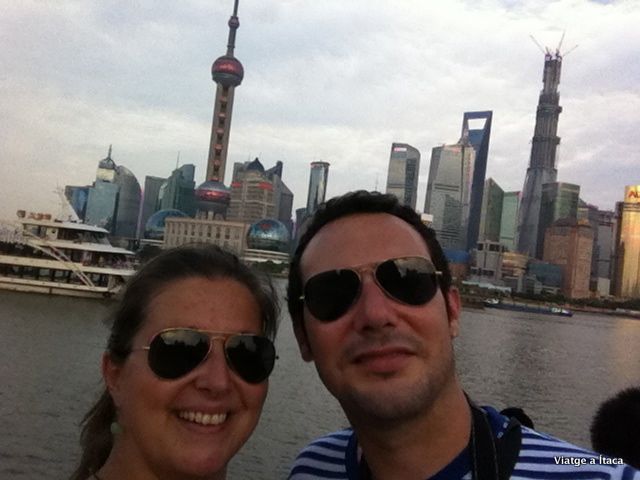 Aquest carrer al final de tot, arriba al Bund, el passeig a la vora del riu des d’on es veuen les vistes de l’altre banda, amb tot d’edificis altíssims i l’edifici la Perla d’Orient que ens ha agradat molt. La veritat és que les vistes són impressionants i tot i la calor val la pena anar-hi.