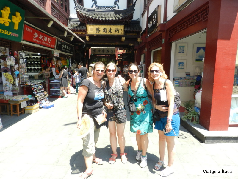 Una hora ben bé de trajecte, i al sortir a la parada de Yuyuan, no només la calor i el sol ens reben, també dues noies molt simpàtiques que ens demanen si els hi podem fer una foto. Amb un anglès molt bo, però amb una verborrea accelerada, i un discurs ben estudiat, ens fam veure que on volem anar hi ha molta gent, i després d’explicar-nos les millors coses de Shangai, ens conviden a acompanyar-les…per sort, hem llegit sobre el tema, i el nostre amic Dinu, ja ens va explicar en primera persona, un episodi similar, així que ens acomiadem amablement, i tot i la seva insistència, marxem en un altre direcció, evitant que ens portin a una casa de tes, on després de prendre els més cars, marxarien i ens deixarien pagant l’astronòmic comte….