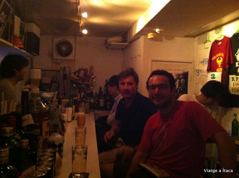 Per acabar el dia, fem visita al Golden gai, un seguit de carrerons, on hi ha bars petits, diminuts diria jo, on poder prendre alguna cosa, ens alguns molt customitzats. Algun rocker, o el plàstic bar, que és la nostre elecció, on segons la guia, la decoració i música son dels 80. Dos persones darrera la barra, i sis tamborets, música en vinils, i unes begudes per fer una mica de conversa amb algun japonès passat de rosca, i amb el DJ. El metro ens amenaça amb el tancament, així que abans de les dotze som fent el recorregut cap al hostel, on una miqueta d’ordinador ens fa d’aperitiu perquè després d’una estoneta de dormir, ens retrobarem amb el Pere i la Glòria, quina il·lusió!!!!!