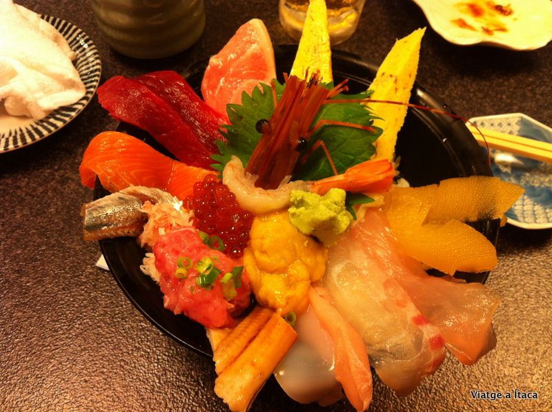 Entre els combinats, un de sashimi, que em transporta a la glòria. Ho paguem una mica més car, però ho fem a gust…..