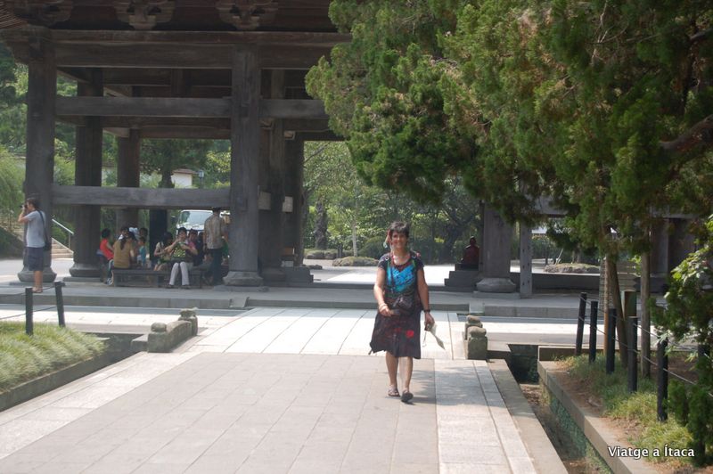El primer, de nom Engakuji, quasi en família, auster en quan a les seves construccions, però d’aquells llocs on l’atmosfera i les condicions et transporten a un entorn màgic on estaries hores i hores. Escales que pugen amunt, i la Glòria i un servidor que les fan realitat, on una campana i un bar on ens hagués agradat poder gaudir d’una bona cerveseta per poder combatre una miqueta d’aquesta calor enganxosa.