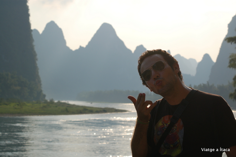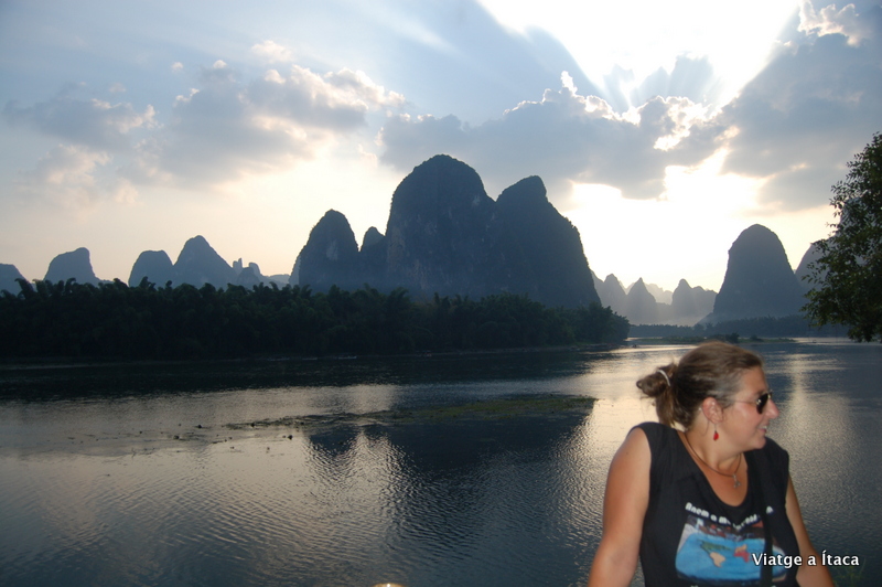 Del Wada Hostel (que ens ha agradat molt i hi tornarem segur les altres vegades que passem per Guilin) a l’estació de busos hi ha més o menys uns 15 minuts a peu, que es farien millor si no fes la calor espantosa que ens ha caigut a sobre. A l’estació hem pogut treure els bitllets a Yangshuo per 22 yuans cada un sense cap dificultat i el bus ha sortit al cap de mitja horeta. I… En una hora i mitja érem a Yangshuo, després d’haver pogut gaudir d’unes vistes impressionants, inclús dins de Guilin hi han aquestes roques càrstiques que ens recorden tant als paisatges que sortien als dibuixos de Bola de Drac, els vèieu?
