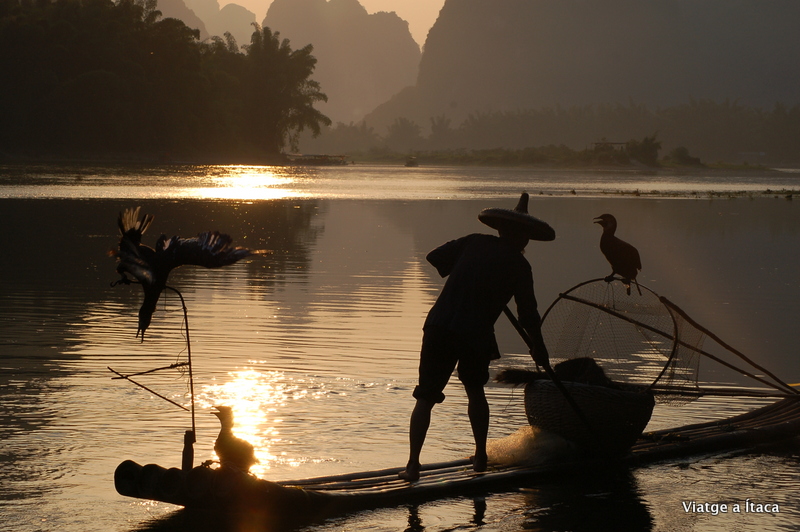 Com tenim pensat fer una excursioneta per aquesta carretera un dia d’aquests, hem decidit tornar enrere, i clar seguir fent alguna foto, però de cop, des de la carretera, hem pogut veure un home vestit de forma tradicional i en una barqueta simulant la pesca amb corb marí. Perquè simulant? Doncs perquè davant hi havia tres o quatre fotògrafs que semblaven professionals.