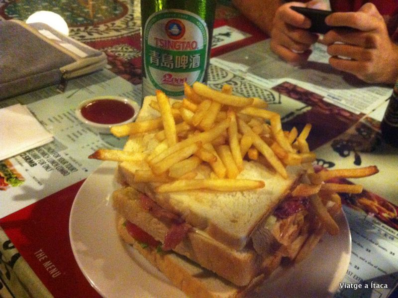 Un megasanwitch amb patates fregides, i un plat xinès de porc, o un plat de porc xinès, tan se val. Ens ho cruspim tot.
