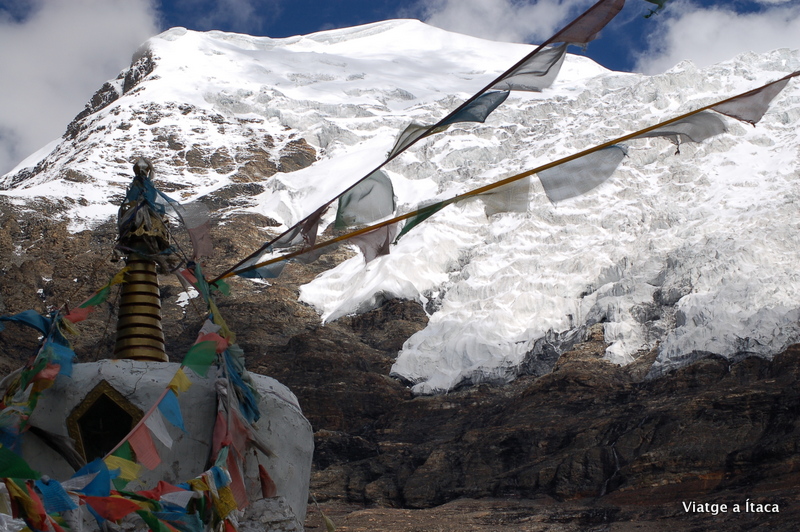 La ruta ens ha portat a un altre coll, aquest on es troba el glaciar Karolha a 5020m d’altitud, que és un dels tres més grans al Tibet, i on hi ha unes vistes impressionants. Pel que sembla, aquí el 1903-1904 va haver-hi una important batalla amb els anglesos.