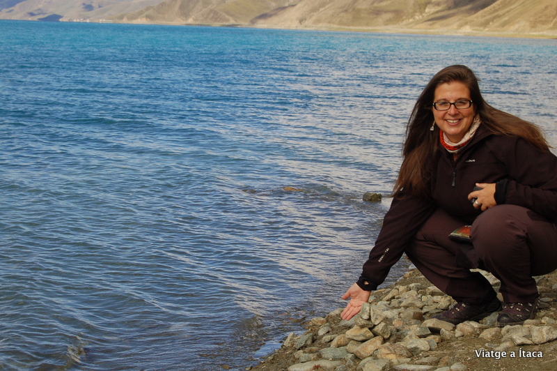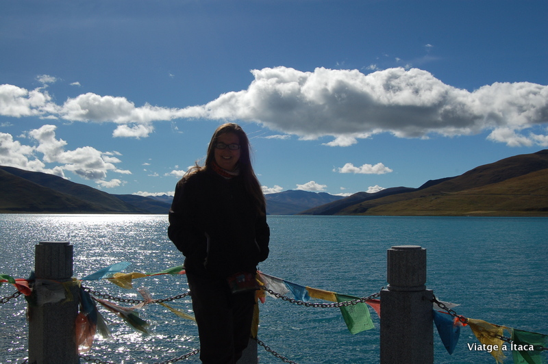 Una bona estona de camí i tot just al arribar al cim d’una muntanya, ohhh allà està les vistes impressionants del llac Yamdrok-Tso, un dels quatre llacs sagrats del Tibet i on no s’hi pot pescar perquè els tibetans creuen que hi ha deus en ell.