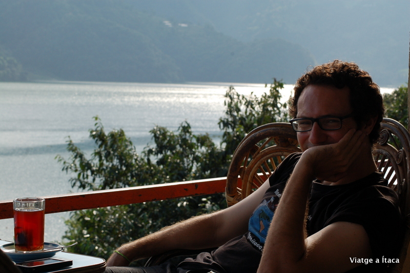El rellotge no el mirem, però si el sol com anuncia retirada. Així que nosaltres deixarem les nostres costums de vida Barcelonines, i cap a les cinc, preveient la foscor que hi haurà en una hora, estem tornant, i descobrim un camí a la vora del llac Phewa, on hi ha un hotel amb unes cabanes de fusta i palmera quasi a peu d’aigua, que tenen una pinta espectacular. No preguntem preu, i estem molt bé on dormim, però serien una bona opció per a una propera ocasió.