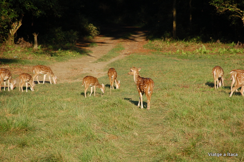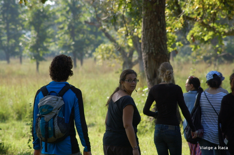 Ara toca caminar per la jungla. Tots en fila índia, i a seguir al guia que va fent el seu camí, parant per seguir petjades, escoltant, o mirant cap a l’horitzó buscant algun signe de vida animal. La vegetació no és massa espessa, i no necessitem de matxets per avançar, si no que el passeig és tranquil. Ni rastre de tigres, ni rinoceronts. Algun ocell, i sobretot micos que es deixen veure de passada ens fan entretingut el camí. Uns cérvols que també s’afegeixen, i pel que ens explica el guia, aquests i els micos, fan una mena d’equip de benefici mutu, en el tema del menjar i de la prevenció de depredadors.