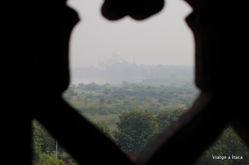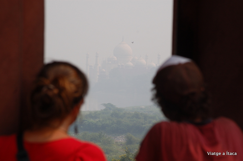 Una de les coses especials que té aquest fort respecte per exemple el de Delhi, és el fet que des de molts llocs d’ell es pot veure el Taj Mahal a la llunyania tocant al riu. Avui més aviat l’hem intuït i no vist, ja que hi havia una boirina que no deixava veure’l amb esplendor, potser per a que ja el veiem demà amb bones condicions?