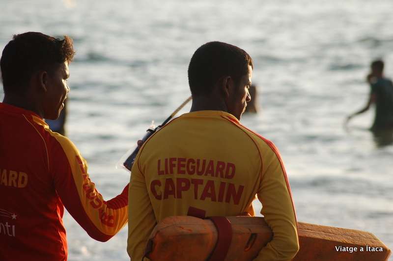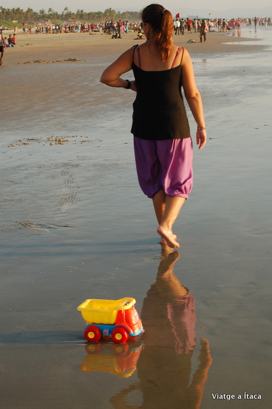 Quan ja en tenim prou, dutxa, canvi de roba, i fem un refresc al bar, mentre les onades venen a saludar-nos abans de desaparèixer. Mentrestant, la idea que potser aquí ens quedarem algun dia mes va començant-nos a calar el subconscient. Comencem a passejar, són les quatre. L’hora bona, on el sol ja no es fa pesat, i la llum comença a agafar un matís més difós. Els indis comencem a inundar alguns punts de la platja, especialment a Colva, on arriba la carretera, i ells com si d’un tren es tractés, s’amunteguen i esperen torn per practicar alguna de les activitats que s’ofereixen relacionades amb motos d’aigua i llanxes.