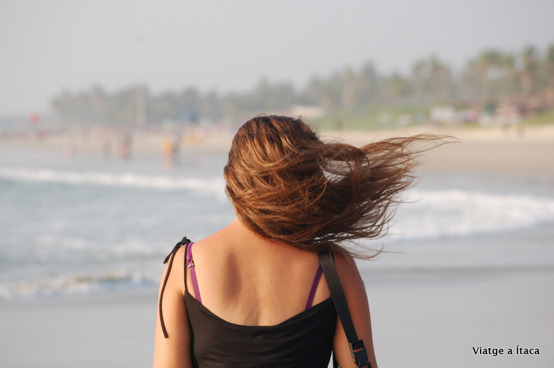 Una altra curiosa d’observar és la manera en com es banyen, primer els homes ho fan en calçotets i les dones vestides (està clar que aquí la industria del banyador de moment no ha triomfat), i en comptes de nadar el que fan la majoria es asseure’s a la zona on es toca i deixar que els hi vagin venint les onades.