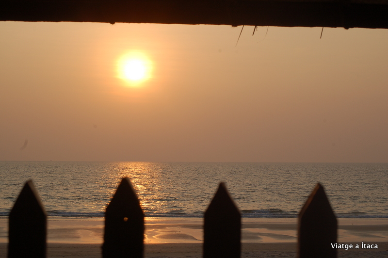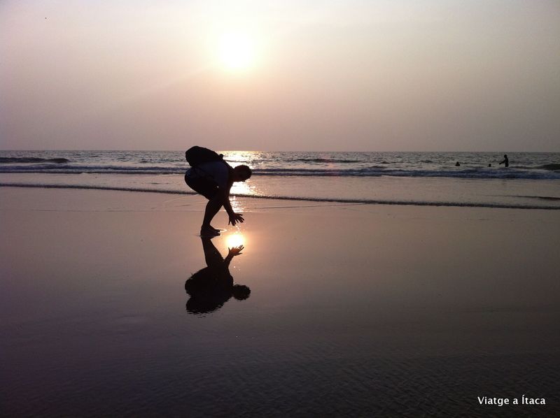 I com no , allò que omple de màgia els nostres moments, com ho feien les nits plenes d’estels als deserts de Mongòlia. Aquí els capvespres, infinits en la seva bellesa, que capritxosament, el sol com a actor principal, i núvols, mar, i sorra com a secundaris, fan una pel·lícula d’Oscar. D’aquelles que tens al costat de la tele, i una vegada i una altre t’agrada visionar, tot i que ja coneixes tots i cada un dels diàlegs. Aquí a Goa l’argument sempre és el mateix, al igual que els actors, però la seva interacció diferent cada dia, fa que esperis el que esperis, para atenció perquè la pel·lícula et sorprendrà i et captivarà cada jornada de projecció.