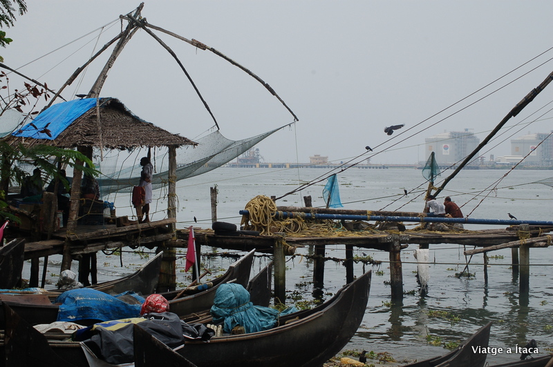 L’estació de destí, parada final del nostre tren és Ernakulam, nom del districte on es troba Kochi. El tren ha recuperat horari endarrerit, i quasi be ha arribat puntual. Trobem una petita habitació on guardaran les nostre motxilles, i sortim per la porta de la estació amb la tranquil·litat que donen els taxis prepagats, i és que aleshores no tens cap eixam d’homes que t’encerclen, tots intentant-te convèncer del mateix alhora, amb arguments similars.