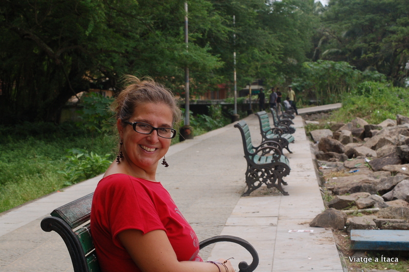 Alguna cosa per dinar, res de peix que portem molts dies menjant-ne, i anem fent temps passejant per aquest barri. De tornada, camí invers. Caminar, barca, caminar, i parada a fer uns sucs al mateix bar d’abans. Des d’allà, una estoneta més, recollir les motxilles que ens han guardat per molt poquetes rupies, i anem a agafar un taxi prepagat fins a l’aeroport.