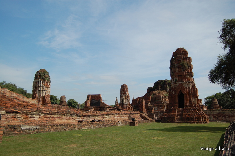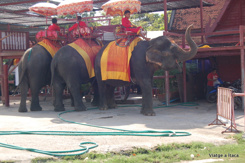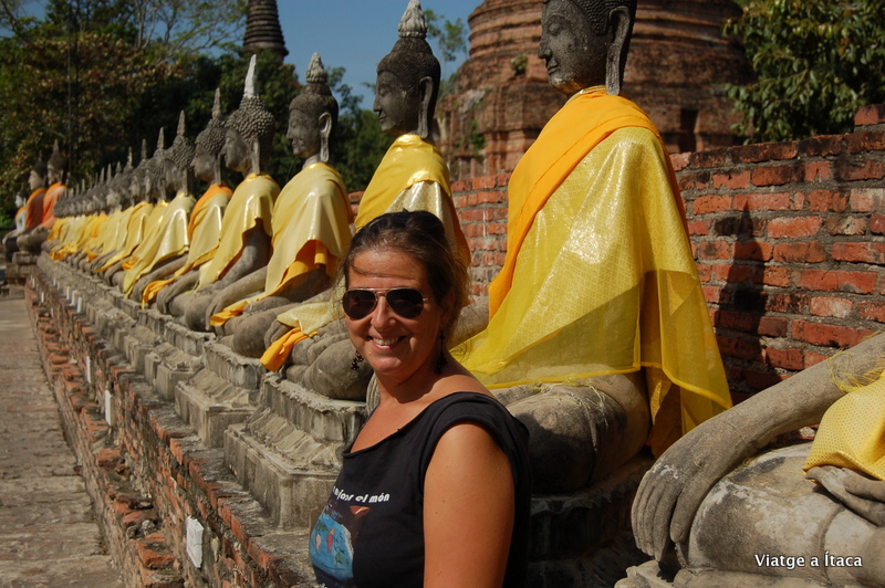 No en som massa de coses organitzades, habitualment no en fem. De fet, en fugim en la mesura que podem, perquè ens agrada anar al nostre ritme decidint quan les coses cal fer-les ràpides i quan lentes, en funció de les sensacions percebudes a cada punt concret que anem a visitar. En aquesta ocasió, una mica, o molt, per la por a que si no ho contractàvem, els encants de Kao San ens fessin dormitar pels seus carrers, vam decidir contractar la excursió a aquesta antiga capital plena de temples. De fet, per això ho vam fer, i també perquè afegia la tornada en vaixell fins a Bangkok a un preu assequible, així que ja hi vam veure l’excusa perfecte… ☺