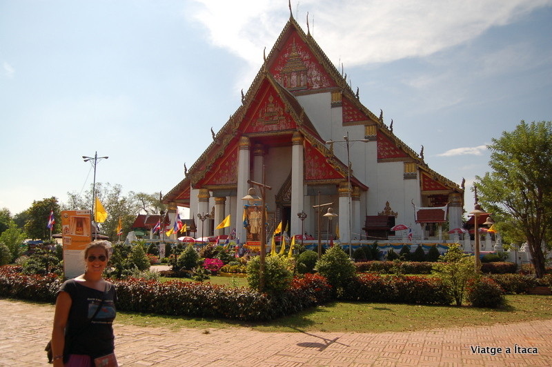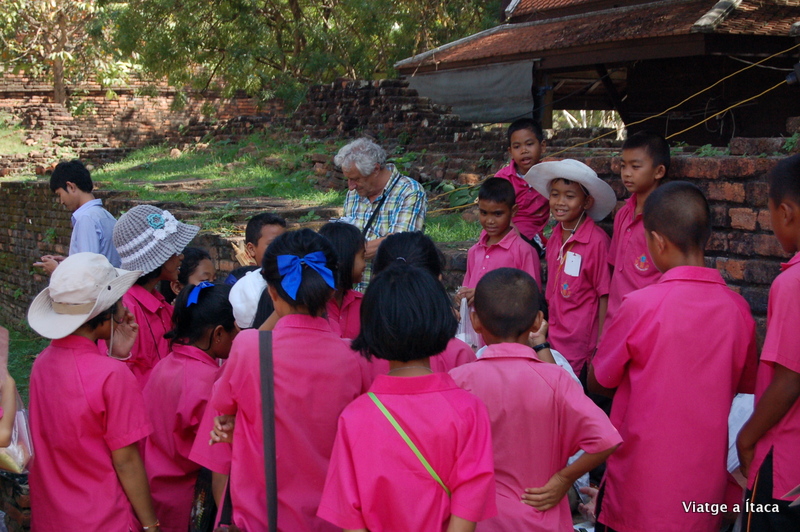 Un parell de voltes més per recollir altre gent i al guia, i quan som plens, cap a Ayuthaya que falta gent. Primer un temple a les afores, i allà quan baixem fem les preguntes al guia sobre el tour, i la nostre sorpresa és que no hi ha final amb vaixell, així que després de discutir una bona estona, i que amb una actitud una mica prepotent adreçant-nos a l’agència on hem comprat el tour, que per poc li costa un parell d’osties, arribem a la conclusió que millor ens oblidem, intentem gaudir del dia, i després ja anirem a parlar amb l’agència a veure si hi ha sort.