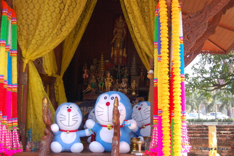 En el mateix recinte, un temple molt petitet, amb ninots del Doraemon al costat del Buda. No coneixem el significat, però ens ha encantat!!!