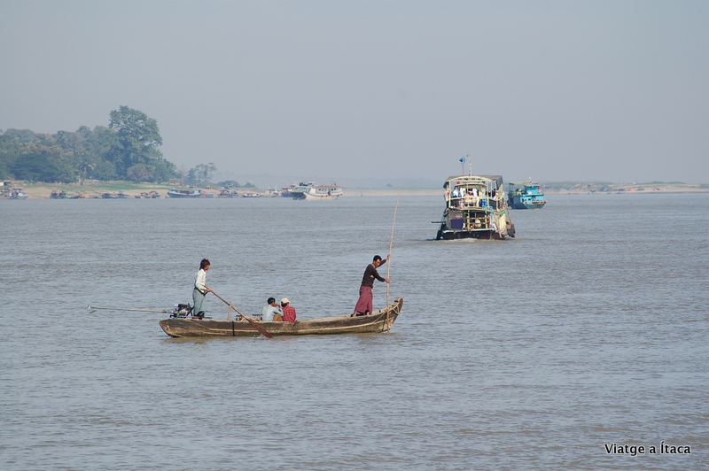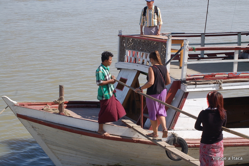 Un altre dia que el despertador no te clemència, i dona la tabarra abans que tota la sensació de son no s’hagi esvaït. Per sort, avui no és una hora intempestiva, però a dos quarts de vuit ja estem esmorzant per tenir una bona base energètica. Ens havien informat que el ferry que porta a Mingun sortia a les 9:30, així que tranquil·lament, i xino xano, fèiem un passeig des de l’hotel fins a la zona on el mapa marcava el punt de sortida del vaixell. Obres, i carrers aixecats que fan més difícil la convivència de vianants i vehicles, i ja tocant al riu, una mena de parc d’entreteniment, amb una noria que sobresortia.