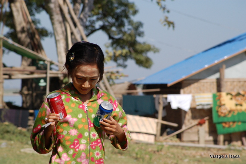 Un passeig per la part del poble més tradicional i les seves cases, on uns quants nens ens saluden mentre juguen. I allà al fons, la gran pagoda blanca que immaculada llueix sota el blau intens del cel. I una foto, però ay!!! Que passa Eva?, i és que un clau de considerables dimensions ha foradat la seva sandàlia, per sort sense arribar a fer ferida, però un bon ensurt ens hem emportat.