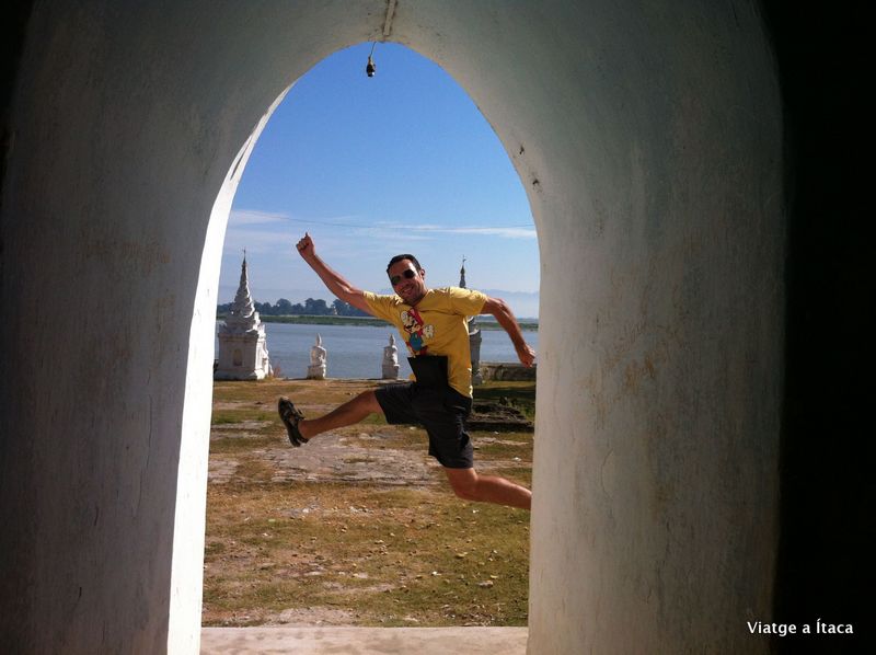 La gran pagoda està rodejada per set onades blanques, que segons ens comenta el guia, és el número de la sort aquí a Myanmar. I sobre les quals, veiem el lloc idoni per fer-nos una foto els dos junts.
