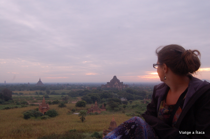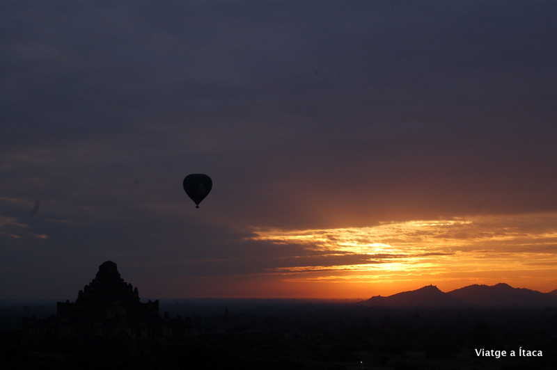 Però la decepció ha vingut quan en un cel totalment clar i blau, ha aparegut un núvol ben gran, un només, però just a on el sol s’havia de pondre, i ens ha privat d’un espectacle que hagués sigut digne de veure. Ens anirem de Bagan sense poder veure els temples amb els grocs i taronges dels matins o capvespres?