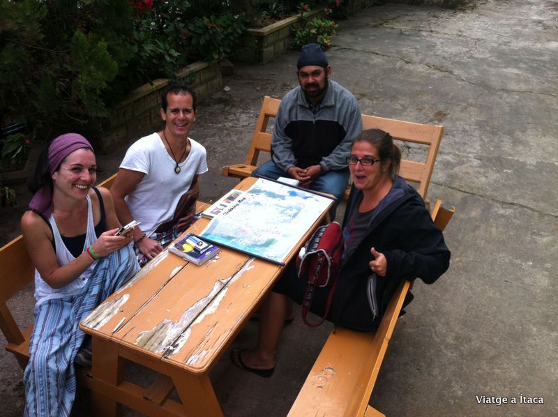Al Gonzalo li havien recomanat contractar el trekking a la Lilly Guesthouse, on ens allotgem, perquè hi ha un guia del qual li havien parlat molt bé, un tal Mounsan. De fet, aquesta era la condició de contractar el trekking, perquè no hem mirat preus a altres llocs. A la negociació amb un dels dos fills de la mestressa, ens comenta que el guia que demanem i ell són com germans, i que cap problema. Ens explica la ruta, i els 48 dòlars que paguem finalment després d’una petita rebaixa no ens semblen malament.