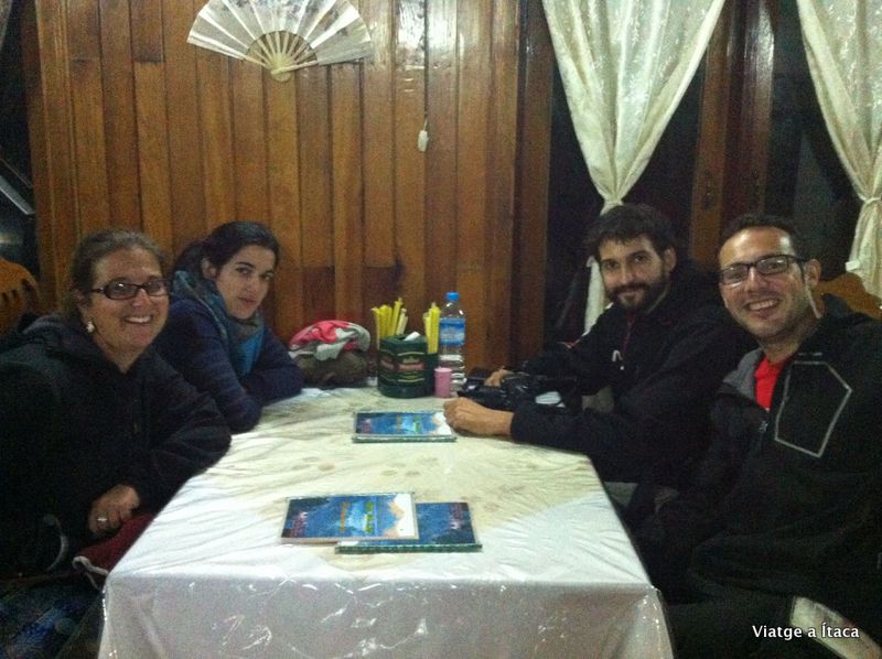 Ja quasi és hora de dinar, i els nostres amics de Madrid se’n van a caminar una mica. Nosaltres explorem el poble; passem pel mercat, per l’escola on coincidim amb l’hora de sortida, i tots els nens que hi ha per allà s’apropen a saludar-nos i a donar-nos la mà. Després de la sobredosi de somriures, seguim caminant, i des de la vora del carrer oposada una senyora que ens fa senyals amb les mans des del seu restaurant. Ens apropem, i com ens ha fet molta gràcia ens hi quedem a dinar. Dinem molt be al “smile restaurant”, així s’anomena el lloc, i tenim un parell de plats per picar, després el que nosaltres demanem, i un postre i te cortesia de la casa.