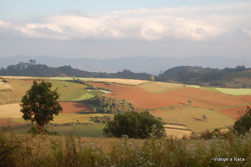 9:00 AM Amanece en Lily Guesthouse. Después de una torpe negociación con el hijo rarito de Lily (por no decir tonto) conseguimos empezar nuestro primer día de trecking. Nuestra eterna promesa el guía Mung Shant de la etnia PAO se ve truncada y cambiada contra nuestra voluntad por el perfectamente vestido profesor de escuela JAMES(ON-ZOE)