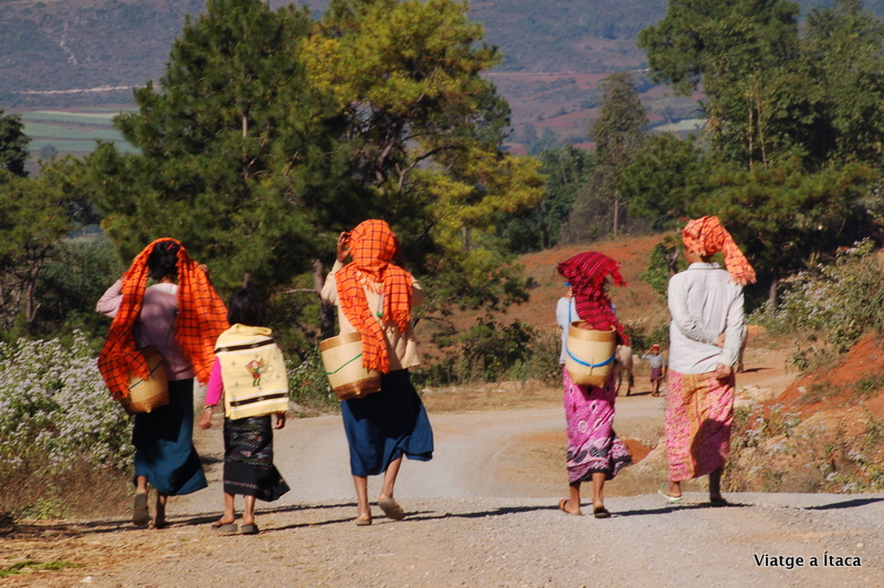 Si en clave étnica hablamos, lo cual implicaría abordar más profundamente una cuestión de gran interés y peso, tanto en términos antropológicos como socio políticos (diversidad/ desigualdad étnica) en este país, hemos pasado por una región principalmente habitada por la etnia Pa-O [http://www.joshuaproject.net/peoples.php?peo3=10892]. Es un pueblo humilde pero muy hospitalario… Siempre tienen una sonrisa y mandarinas para nosotros! Son principalmente agricultores y tal vez uno de sus símbolos idiosincrásicos más visible de su cultura, sean los llamativos y calentitos pañuelos que sus mujeres lucen gustosas…
