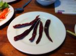 Posem en un wok 5 cullerades d’oli (del que vulgueu menys d’oliva o sèsam), 10 chilis, 2 cullerades de pastanaga tallada a tires (una cullerada equival a un grapat), 1 cullerada de ceba tallada també i una cullerada d’all tallat.