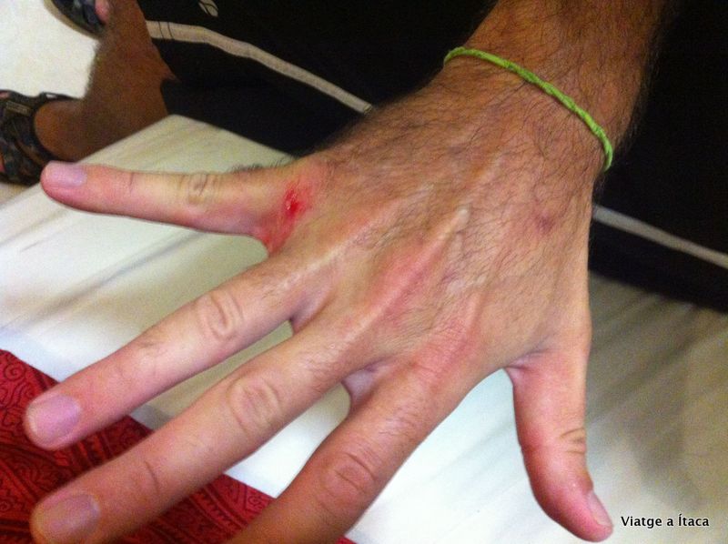 Així que hem passat aquest tres dies dedicant-los a nosaltres, i a més de contractar un autobús que ens transportarà en un trajecte de dos dies cap a terres Cambodjanes quan el Nadal ja hagi passat, vam fer-nos un petit regal de Nadal. Unes compres, perquè qui per Nadal res no estrena, res no val, i uns pantalons de 3 euros per cadascú, a joc amb samarreta, fa que renovis una miqueta aquell vestuari al qual d’alguna manera ja t’hi sents lligat després de tants dies sense canviar-lo, i a més respectes la dita més escoltada per aquest dies.