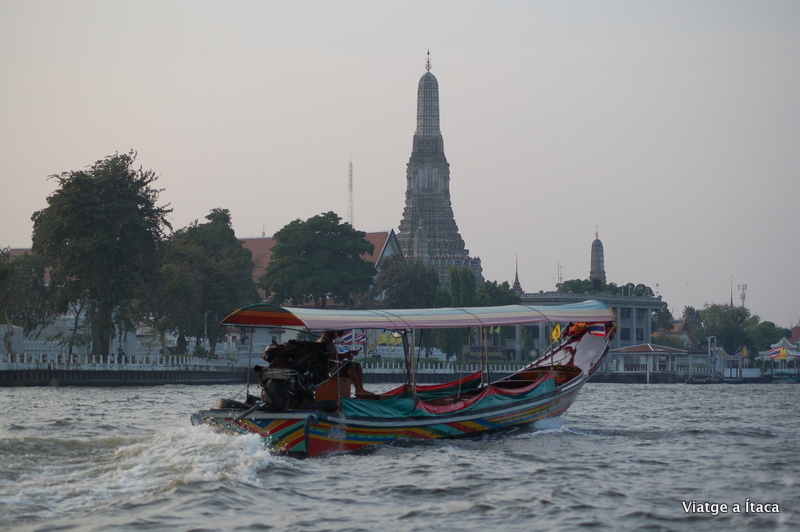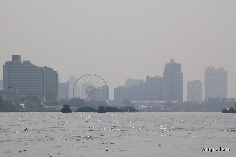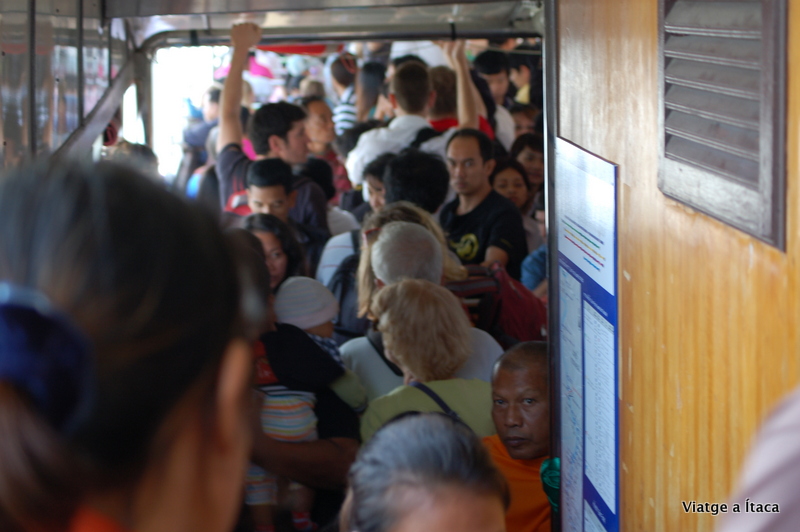 Per anar-hi des de Kao San Road, hem agafat primerament les barques que circulen pel riu a mode d’autobús fins a la última de les parades, o primera depèn en el sentit que es faci. La veritat és que anava força a tope, però és una bona forma de moure’s per la ciutat ja que a més veus la vida al riu, i a més és econòmica.