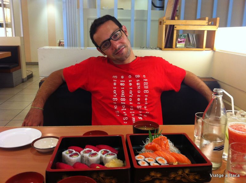 El que si que hi hem fet, ha sigut dinar, i que hem dinat el dia de Nadal?? Doncs una cosa tant típica com menjar japonès!! El Mario ja tenia mono, i per tant una mica de sushi al cos que ja va bé!!