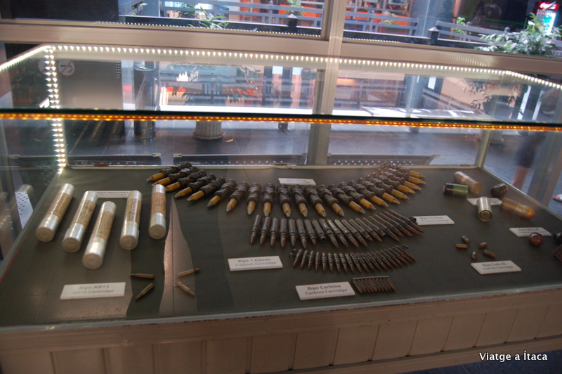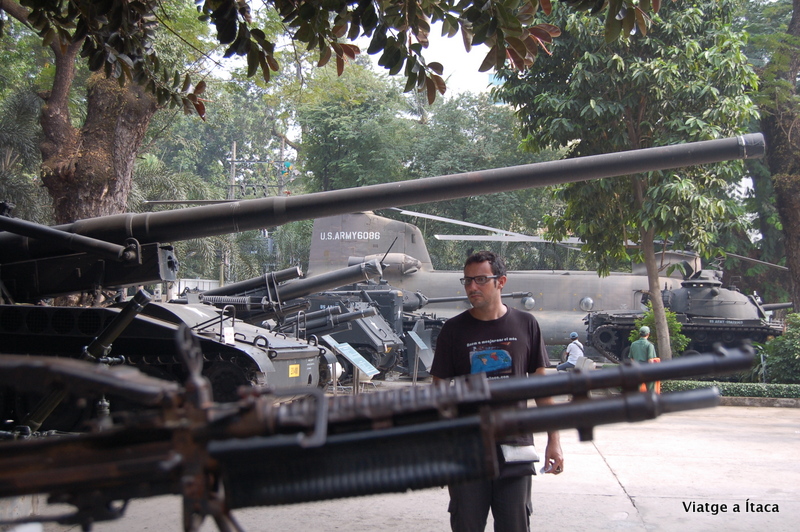 I a la una toca visita perquè obre el torn de tarda del Museu de les restes de la guerra, un lloc que ens interessava veure. El museu està ubicat a les instal·lacions de l’antiga agència d’informació dels Estats Units, i aquí hi pots trobar sobretot fotografies, material militar en forma d’armes de tots els tipus imaginables i que ens hem cansat d’escoltar a la filmografia del gènere, i grans aparells bèl·lics com helicòpters, avions o tancs.