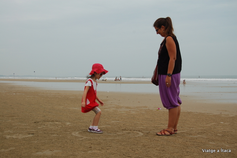 Ens passegen en cotxe per tota la costa fins a uns penya-segats, on fem una parada per anar al lavabo i de pas aprofitar per fer algunes fotos. I d’aquí anem una estoneta a la platja, però no fa gaire bon temps, així que únicament hi passegem una mica i sobretot juguem amb la My Van.
