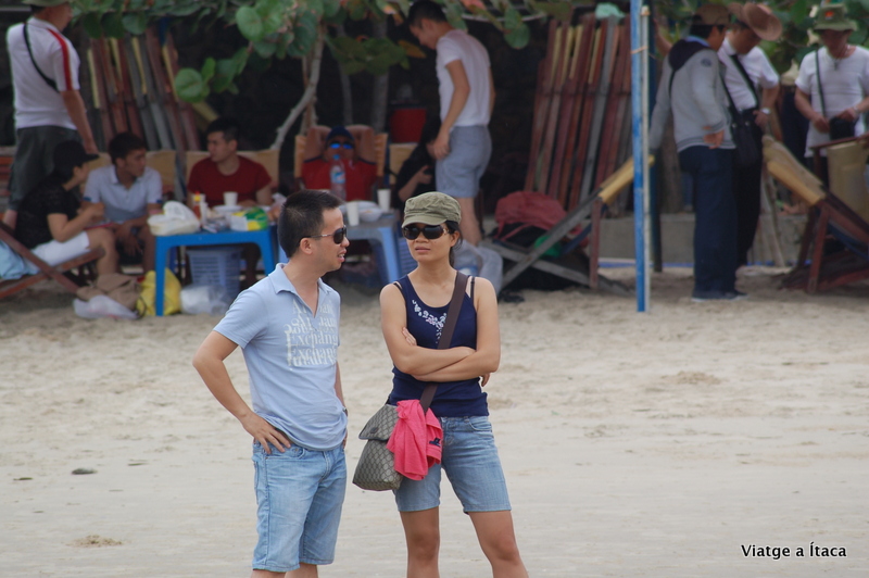 El primer lloc on ens porten és a una zona de platja, anomenada Vung Tau, relativament propera a Saigon, però que sembla que s’estan apropiant els russos o si més no, és el turisme principal a la zona i molts dels bars o restaurants tenen la carta exclusivament en rus. Estem començant a veure que el russos estan envaint una mica tot el que són platges d’Àsia, ho vam veure a Goa, també a Sihanoukville, i ara ho estem començant a veure aquí, perquè el que si que us podem dir és que en altres zones ni els hem vist, suposo que el fred del seu país fa que només vulguin sol i platja 😉