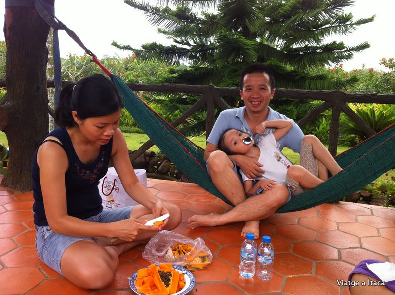 El My ens explica que la seva mare va construir aquesta casa ara fa uns deu anys, i que li agrada molt venir-hi, que quan està ella tot el jardí i els arbres estan com una patena. També ens diu que si ens haguéssim estat més dies amb ells ens hauríem quedat a dormir, i és una idea que ens hagués agradat força, ja que el lloc és genial i sobretot moooolt tranquil. Així que em sembla… que haurem de tornar per poder gaudir d’aquesta experiència 😉